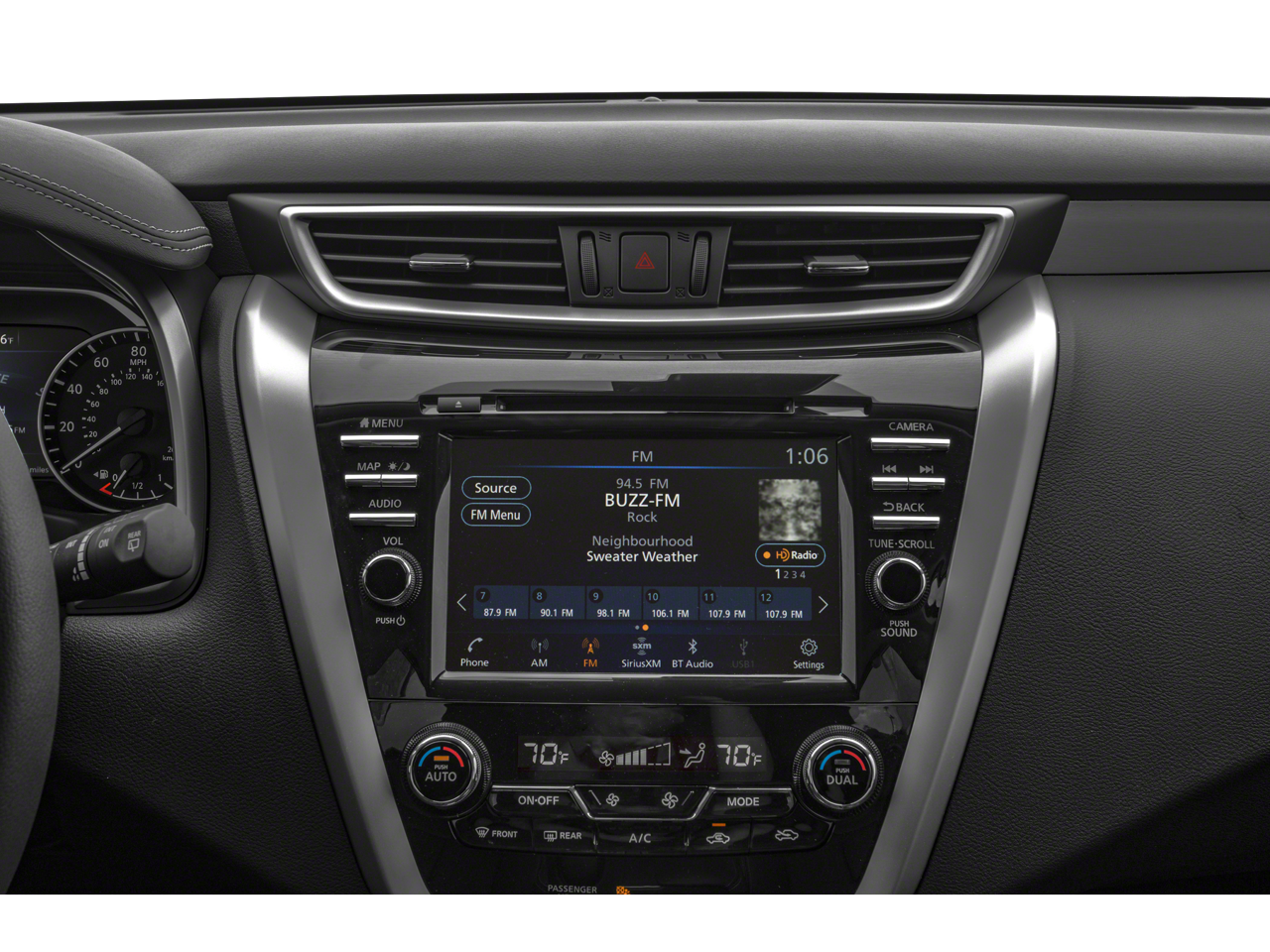 - Radio: AM/FM/CD/MP3/WMA Audio System -inc: 6 speakers, auxiliary audio input jack, SiriusXM satellite radio, NissanConnect featuring Apple CarPlay and Android Auto, 8" color display w/multi-touch control, 2 front illuminated USB connection ports (1 type-A, 1 type-C) for iPod interface and other compatible devices, Bluetooth hands-free phone system, streaming audio via Bluetooth, hands-free text-messaging assistant and 2 rear illuminated USB charge ports (1 type-A, 1 type-C)